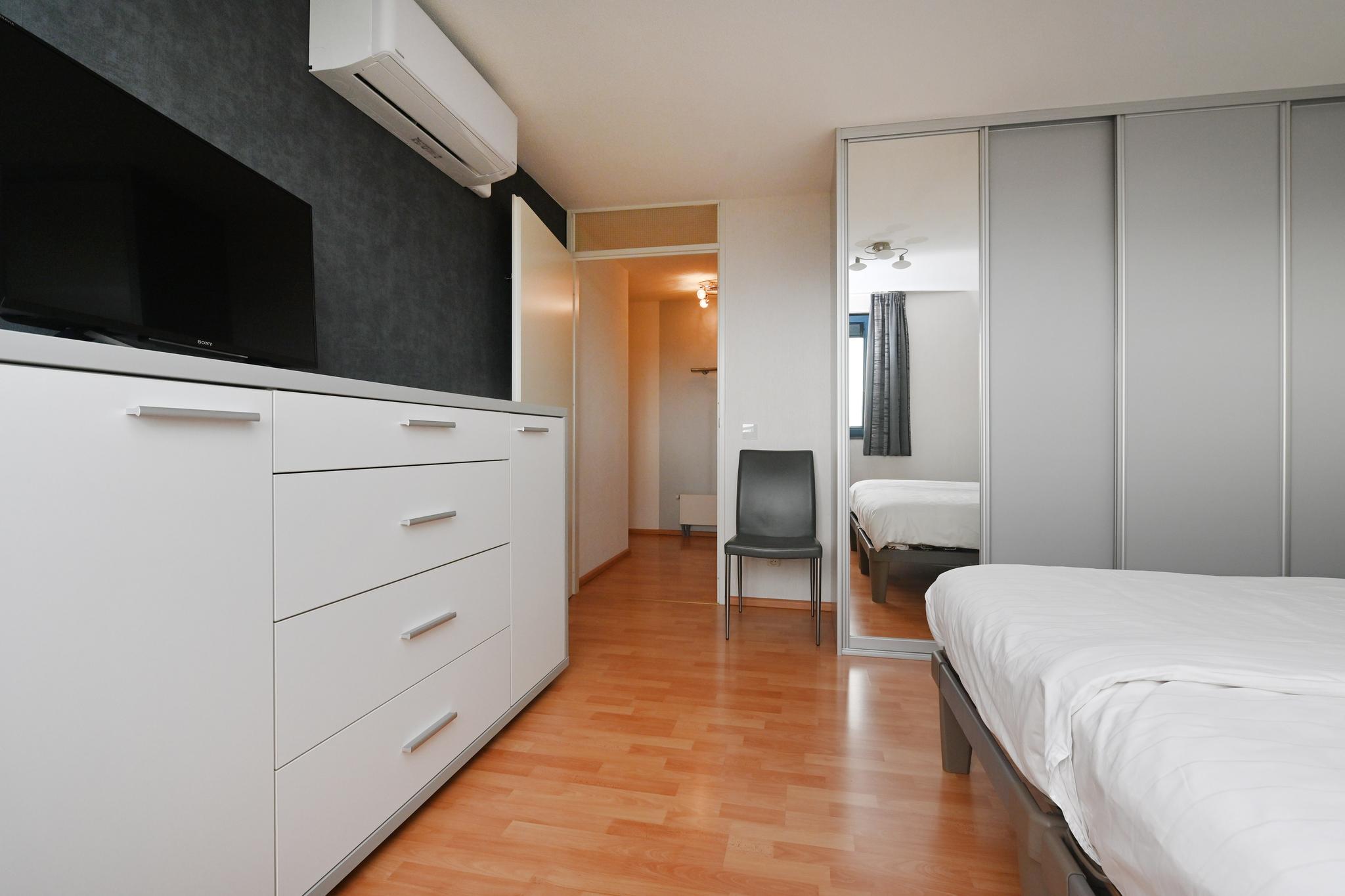 Vijfde verdieping: Hal met videosysteem en toegang tot alle vertrekken. Riante living met opvallend veel lichtinval door de grote schuifpui en ook de ramen aan de zijkant. Voorzien van airconditioning voor verwarmen en koelen.