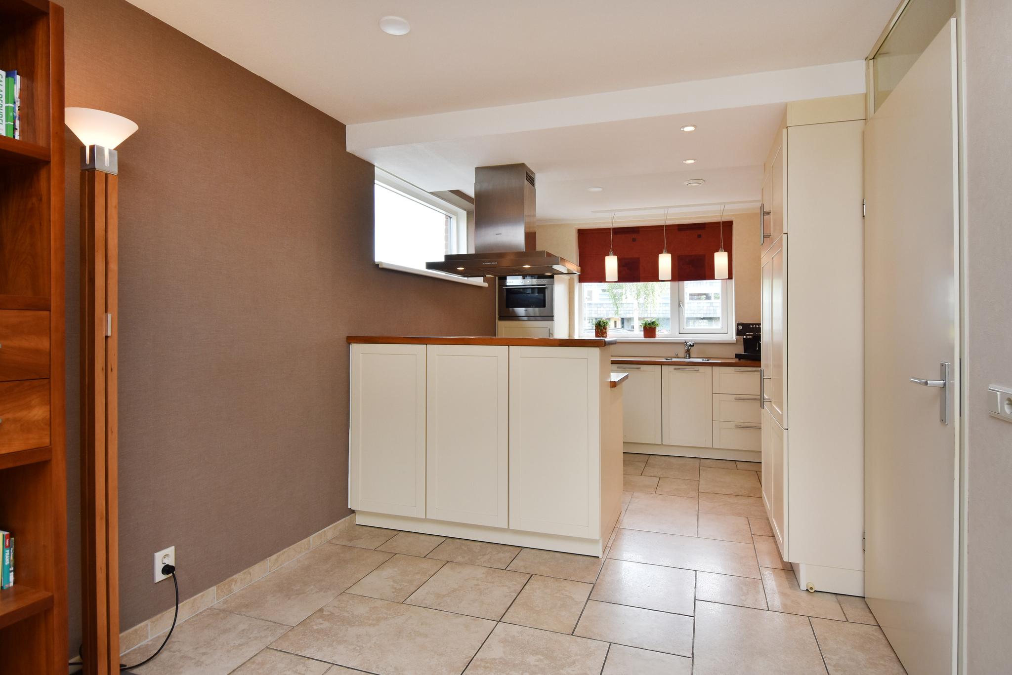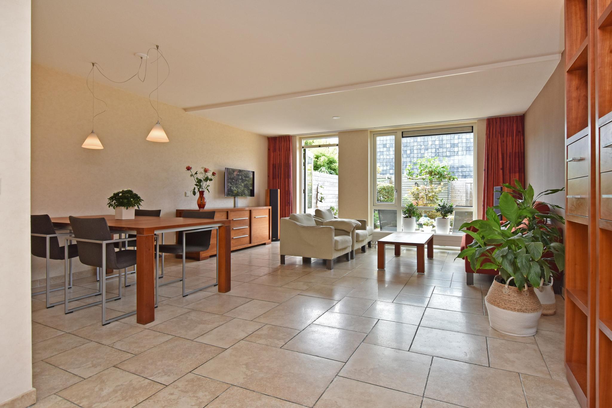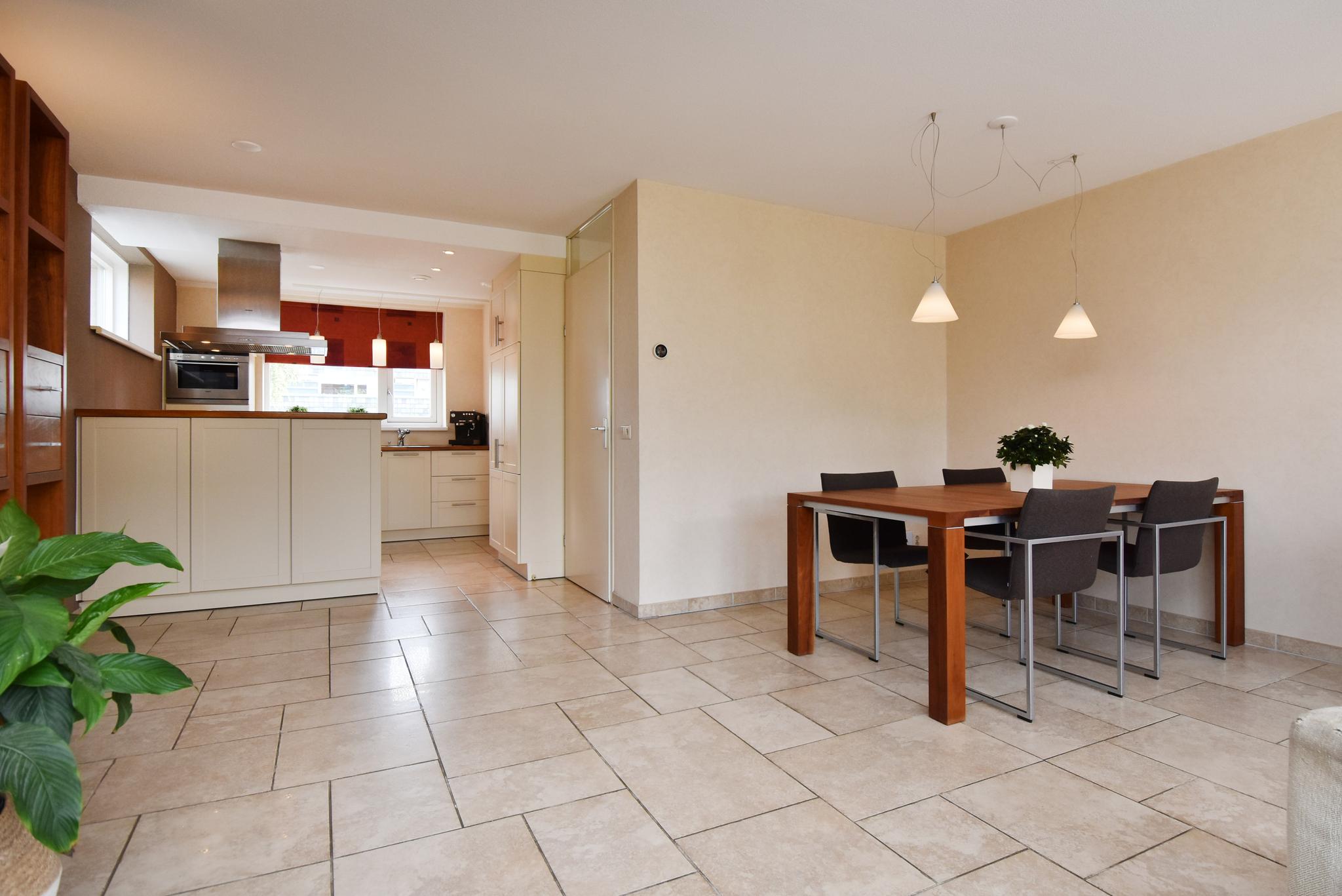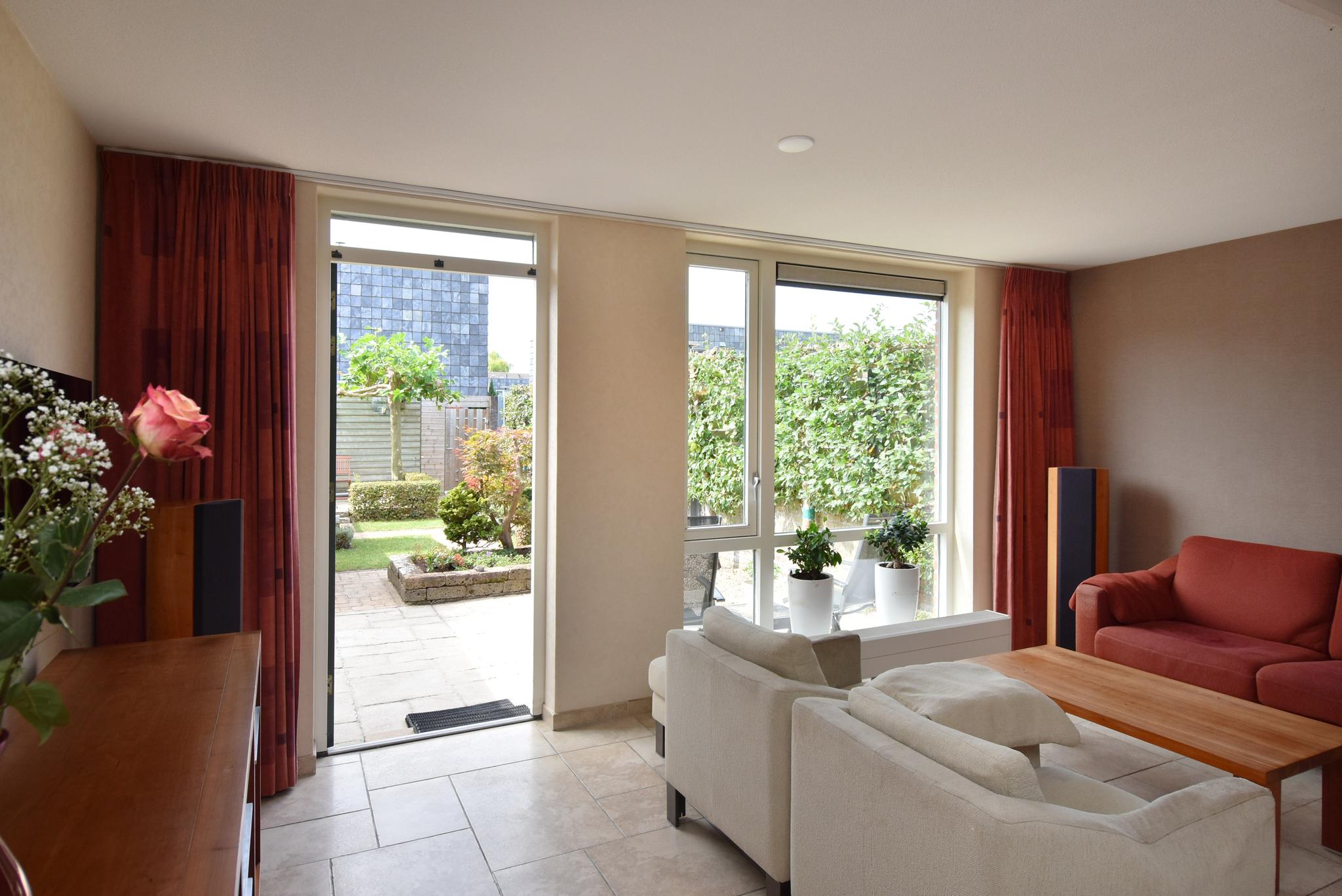 Begane grond: Entree/hal, toiletruimte met hangend closet, meterkast en berging onder de trap. Aan de voorzijde gelegen open keuken met een kook-schiereiland voorzien van diverse inbouwapparatuur. Vanwege de hoekligging zijn er extra ramen aan de zijkant wat veel extra lichtinval genereert. Heerlijk ruime, aan de achterzijde uitgebouwde woonkamer. Op de vloer ligt een mooie tegelvloer in patroon gelegd en v.v. vloerverwarming. De achtertuin ligt gunstig qua bezonning op het zuidwesten, heeft diverse terrassen zodat er altijd wel een plek in de zon (of schaduw) te vinden is, aan achterzijde staat de fietsenberging en achterom.