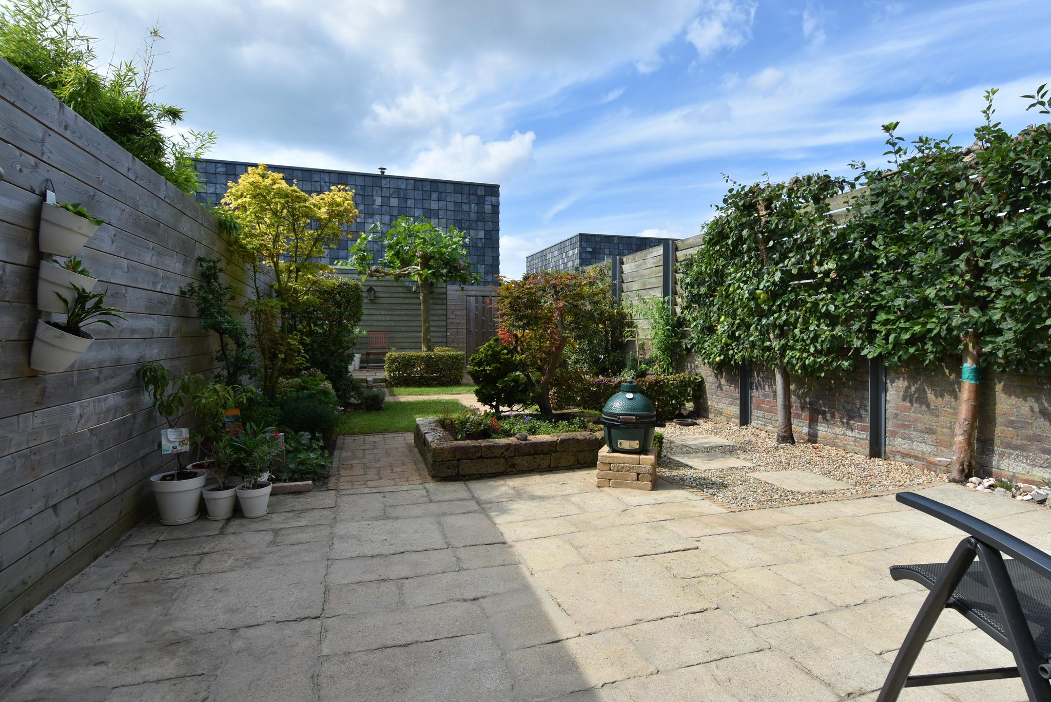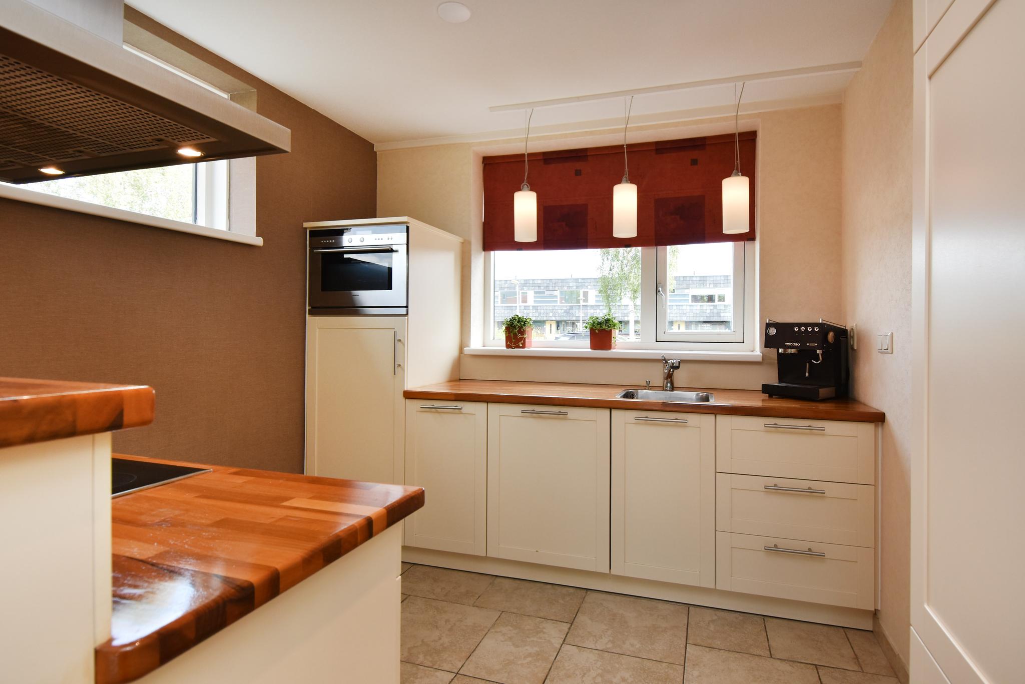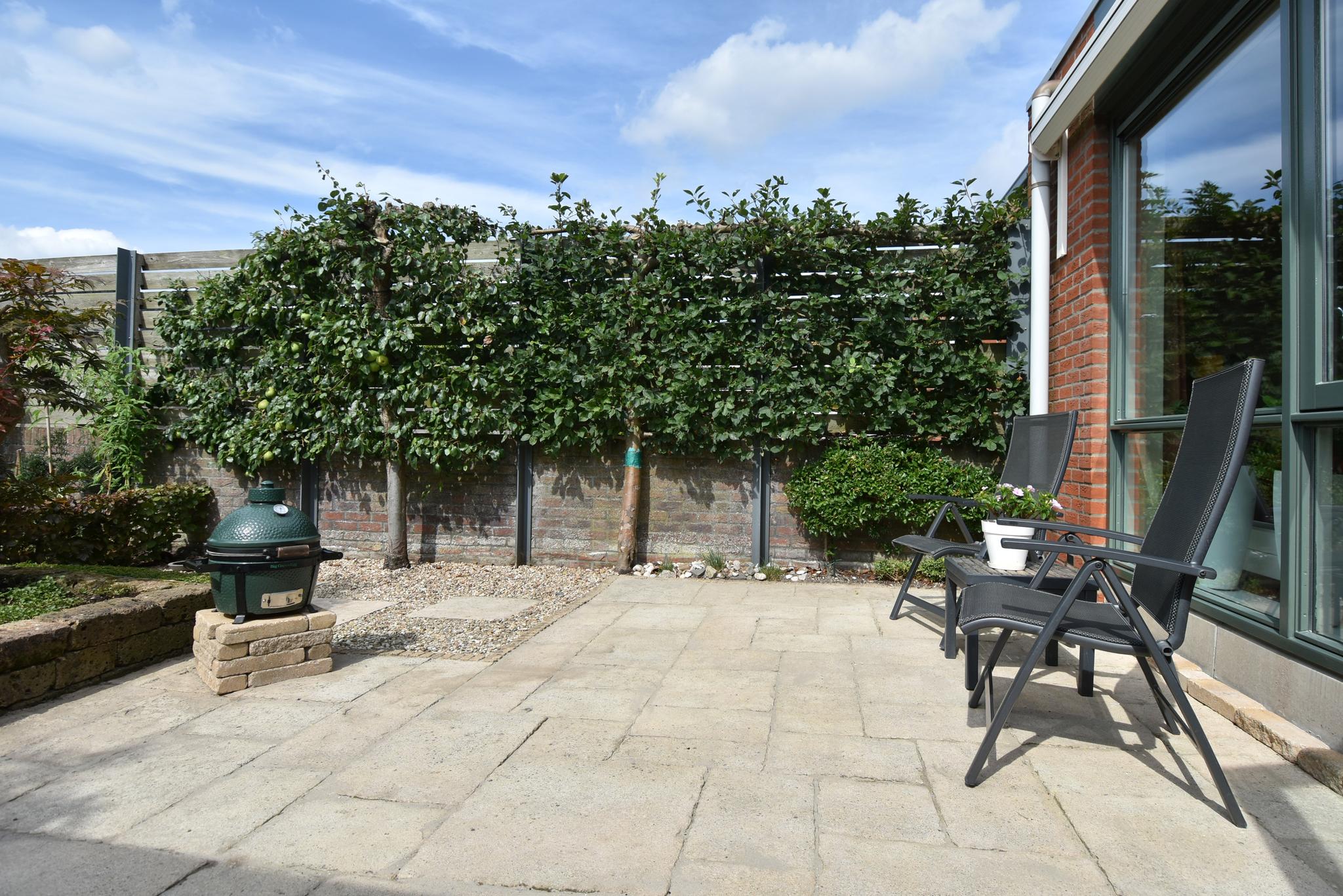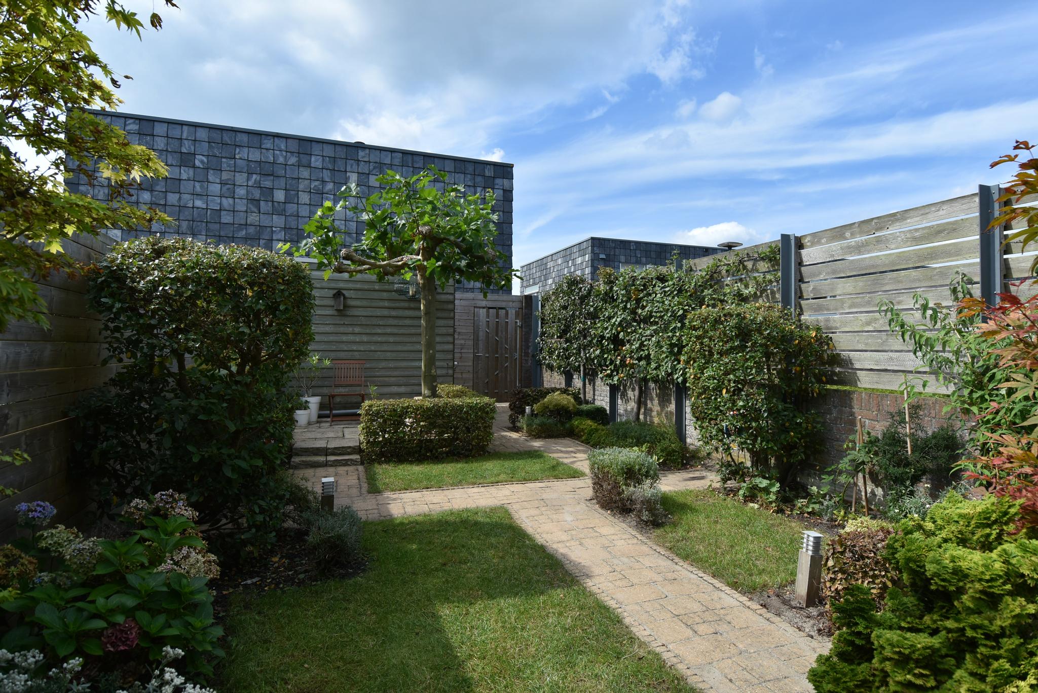 Begane grond: Entree/hal, toiletruimte met hangend closet, meterkast en berging onder de trap. Aan de voorzijde gelegen open keuken met een kook-schiereiland voorzien van diverse inbouwapparatuur. Vanwege de hoekligging zijn er extra ramen aan de zijkant wat veel extra lichtinval genereert. Heerlijk ruime, aan de achterzijde uitgebouwde woonkamer. Op de vloer ligt een mooie tegelvloer in patroon gelegd en v.v. vloerverwarming. De achtertuin ligt gunstig qua bezonning op het zuidwesten, heeft diverse terrassen zodat er altijd wel een plek in de zon (of schaduw) te vinden is, aan achterzijde staat de fietsenberging en achterom.