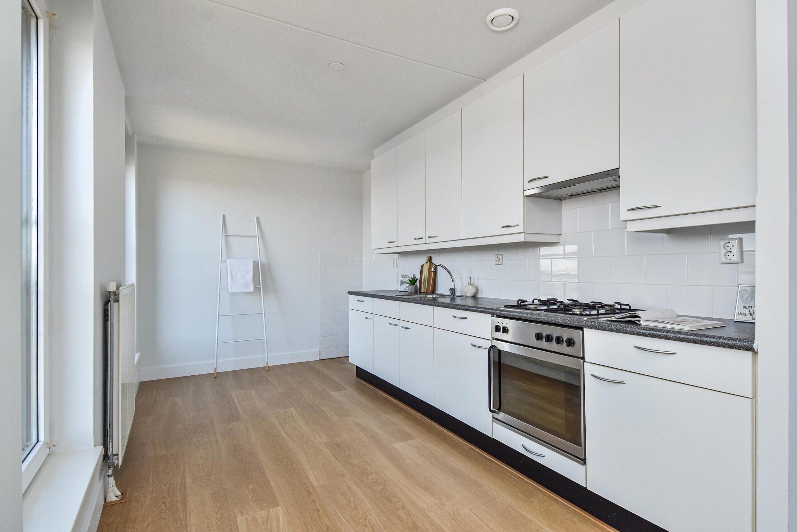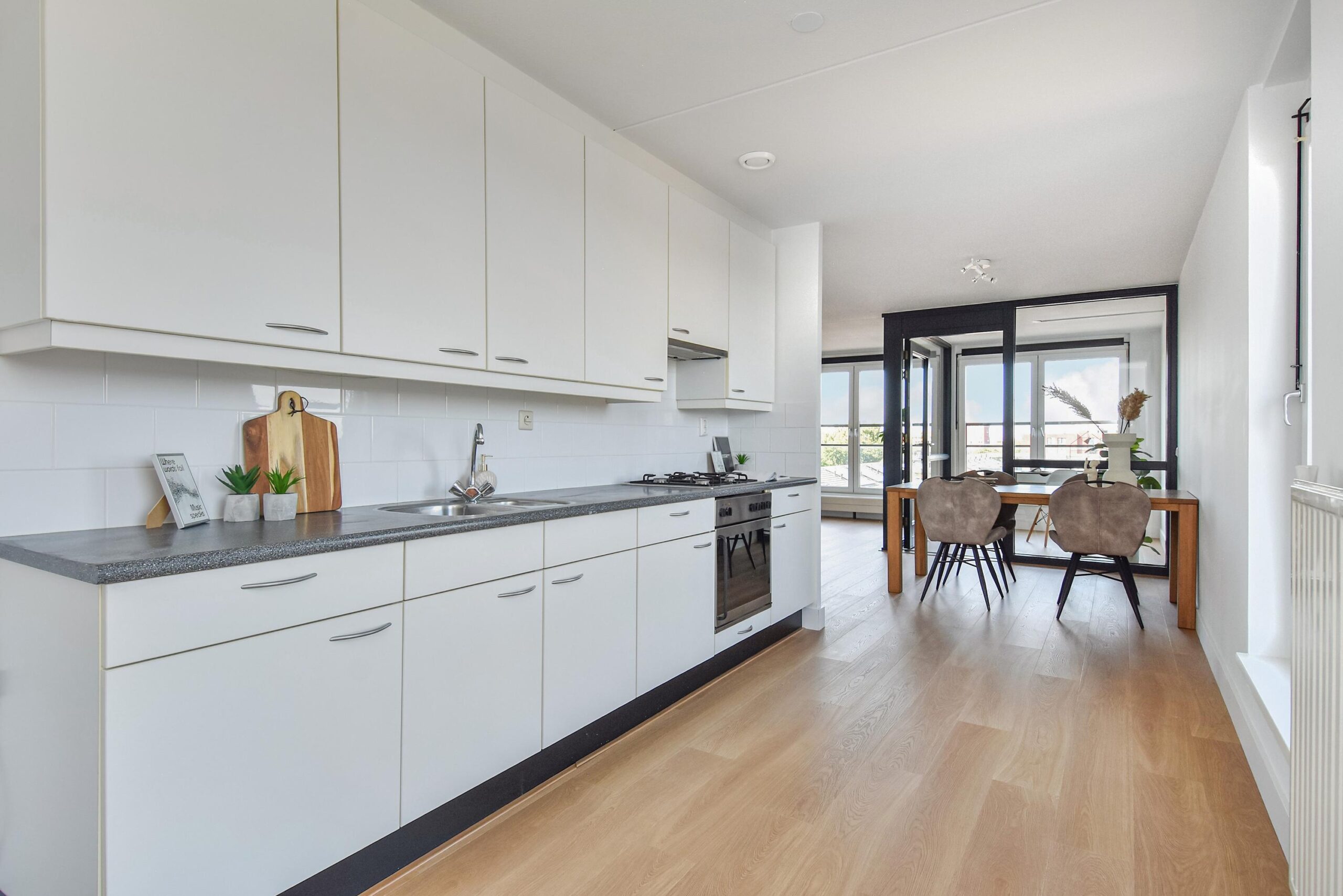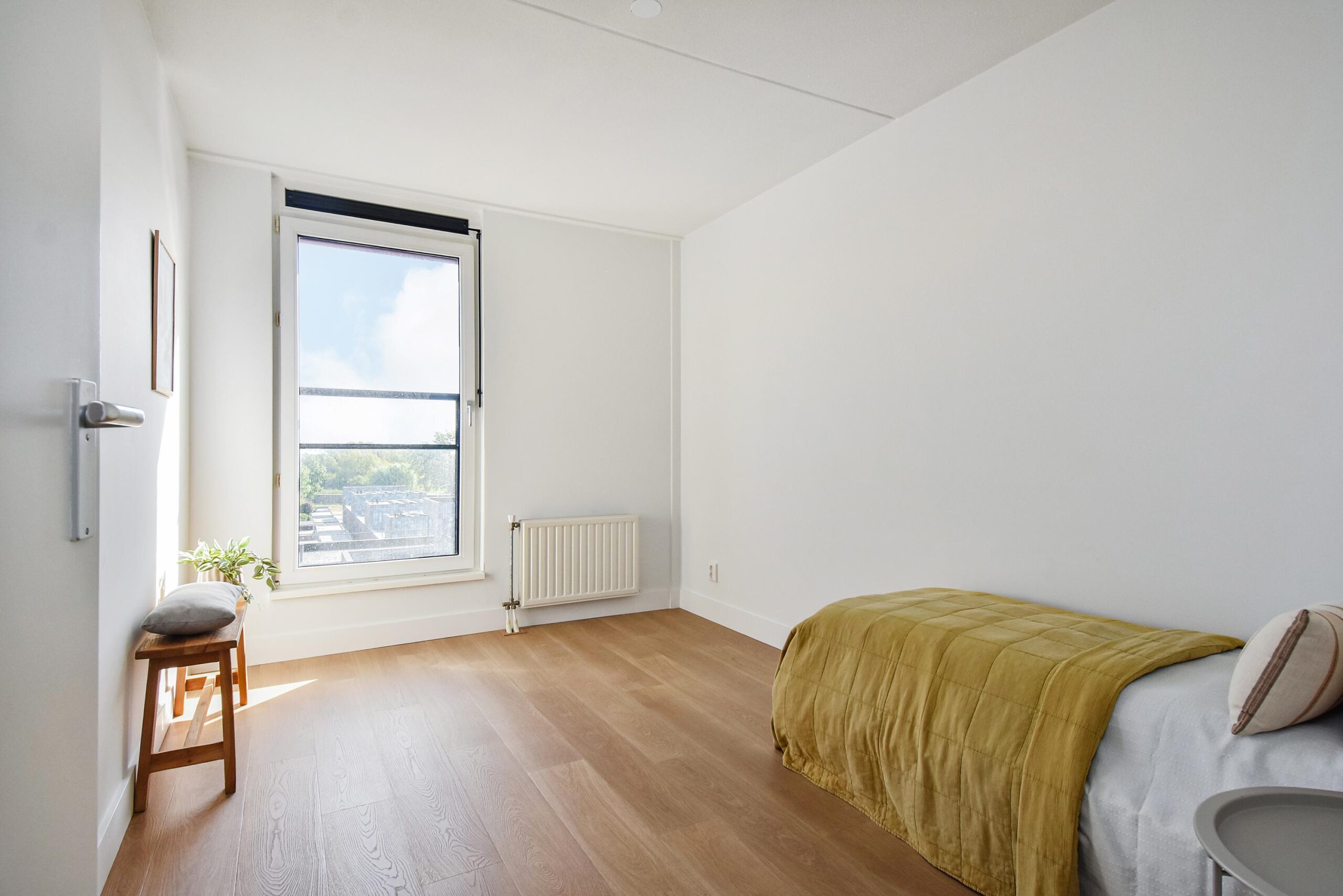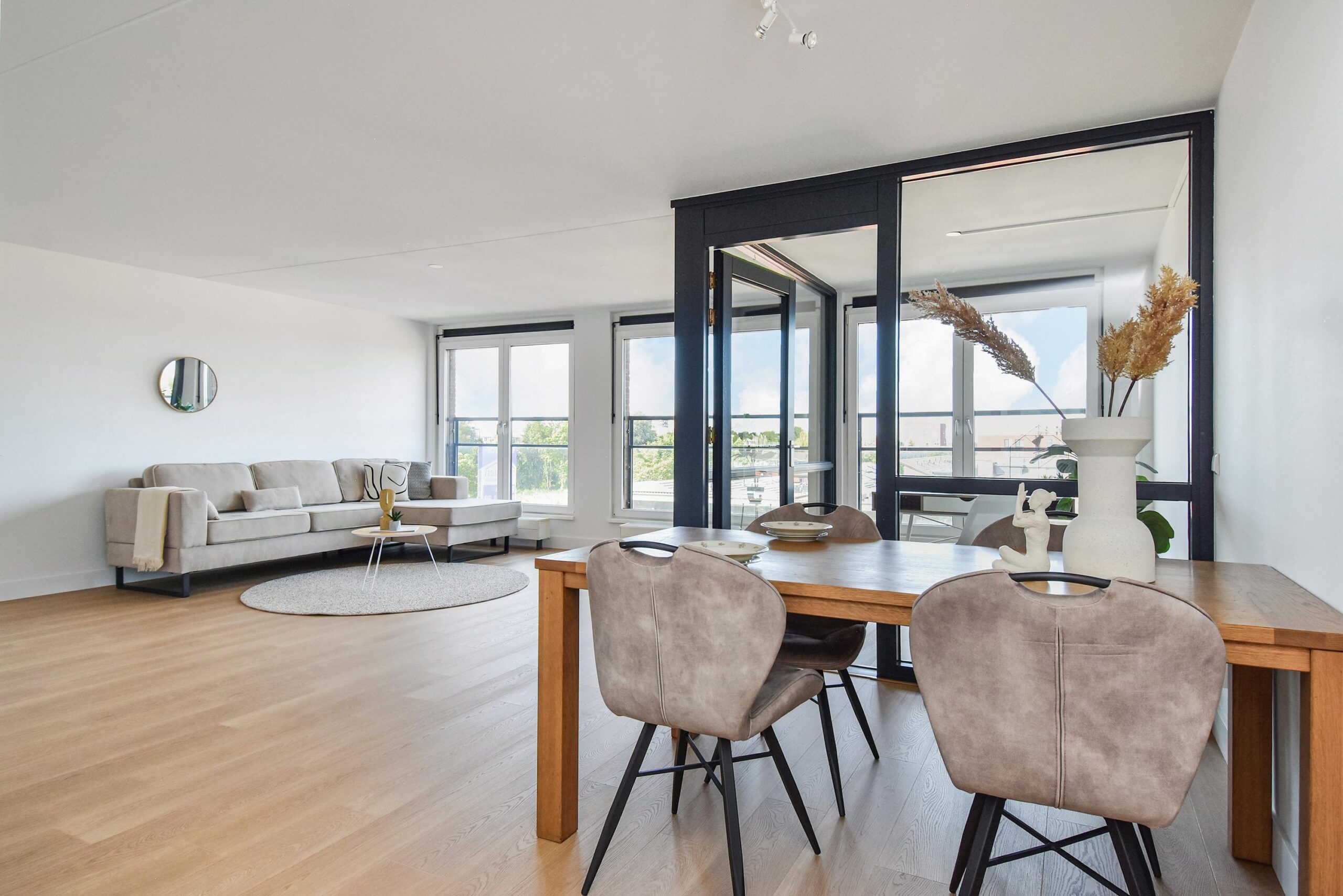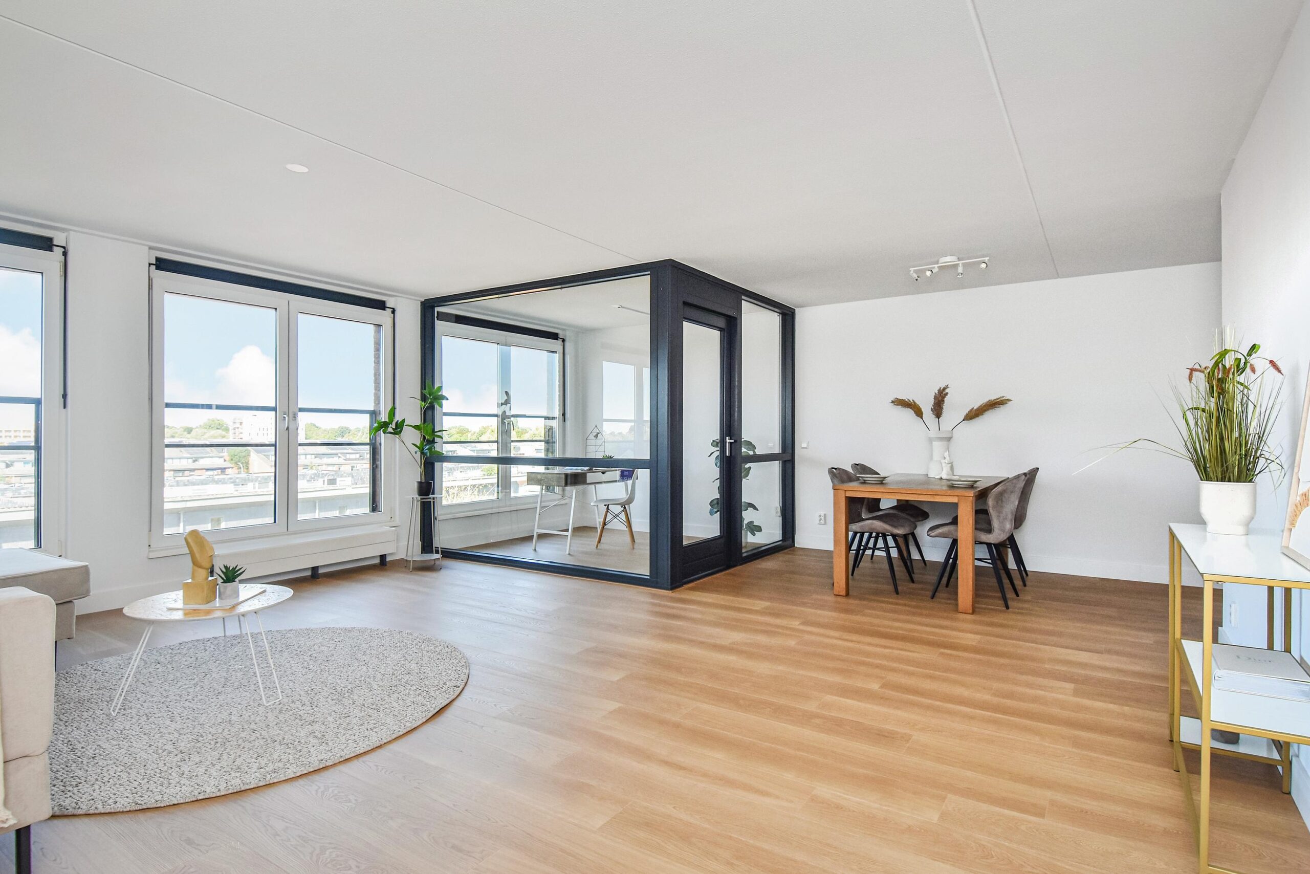 De royale woonkamer, met zijn grote ramen, geeft een heerlijk ruim en open gevoel. Het appartement is verzorgd en recentelijk voorzien van nieuwe wandafwerking en een nieuwe vloer.