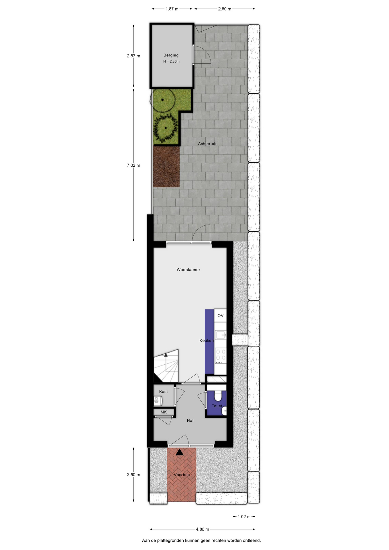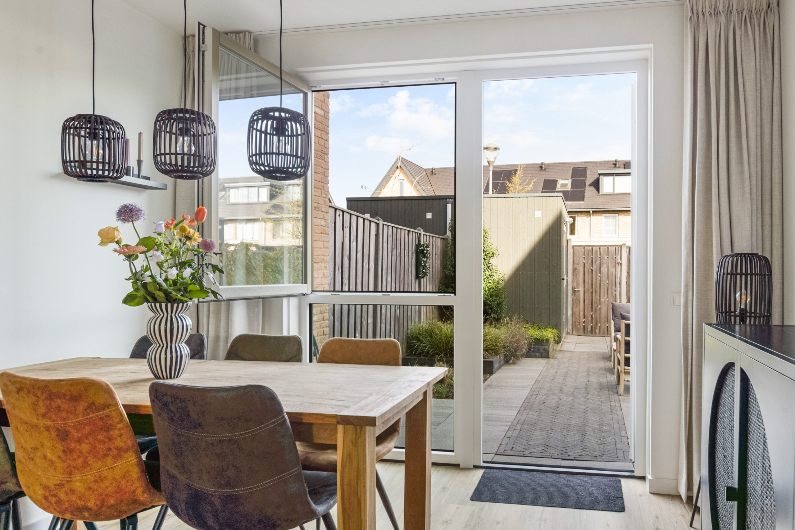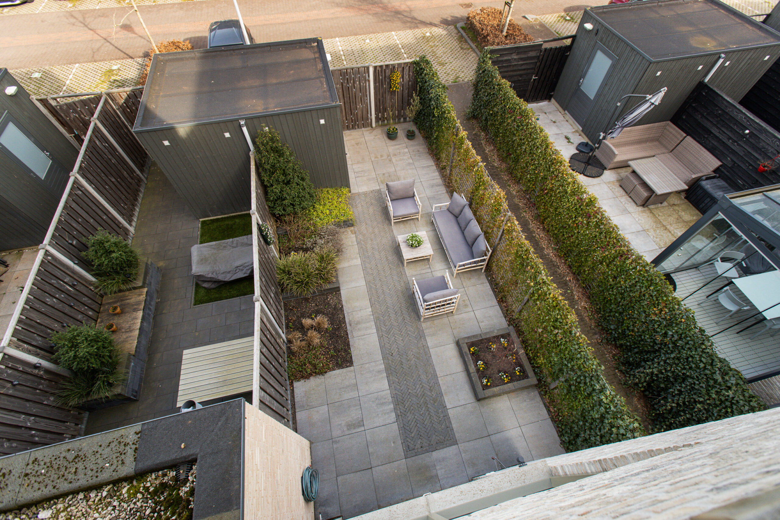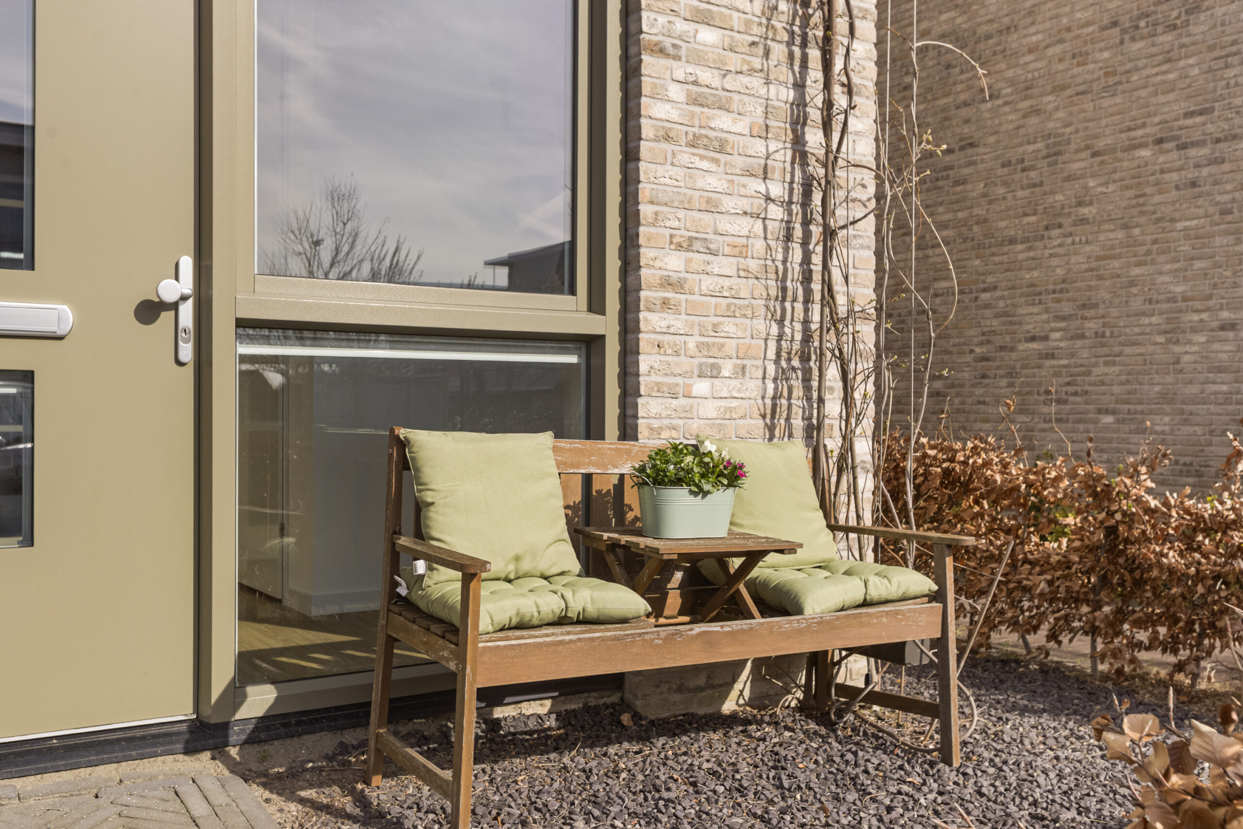 De woning beschikt over een leuk aangelegde tuin met groen en een terras waar je heerlijk kunt zitten. Achterin de tuin staat een berging voor fietsen en tuinspullen.