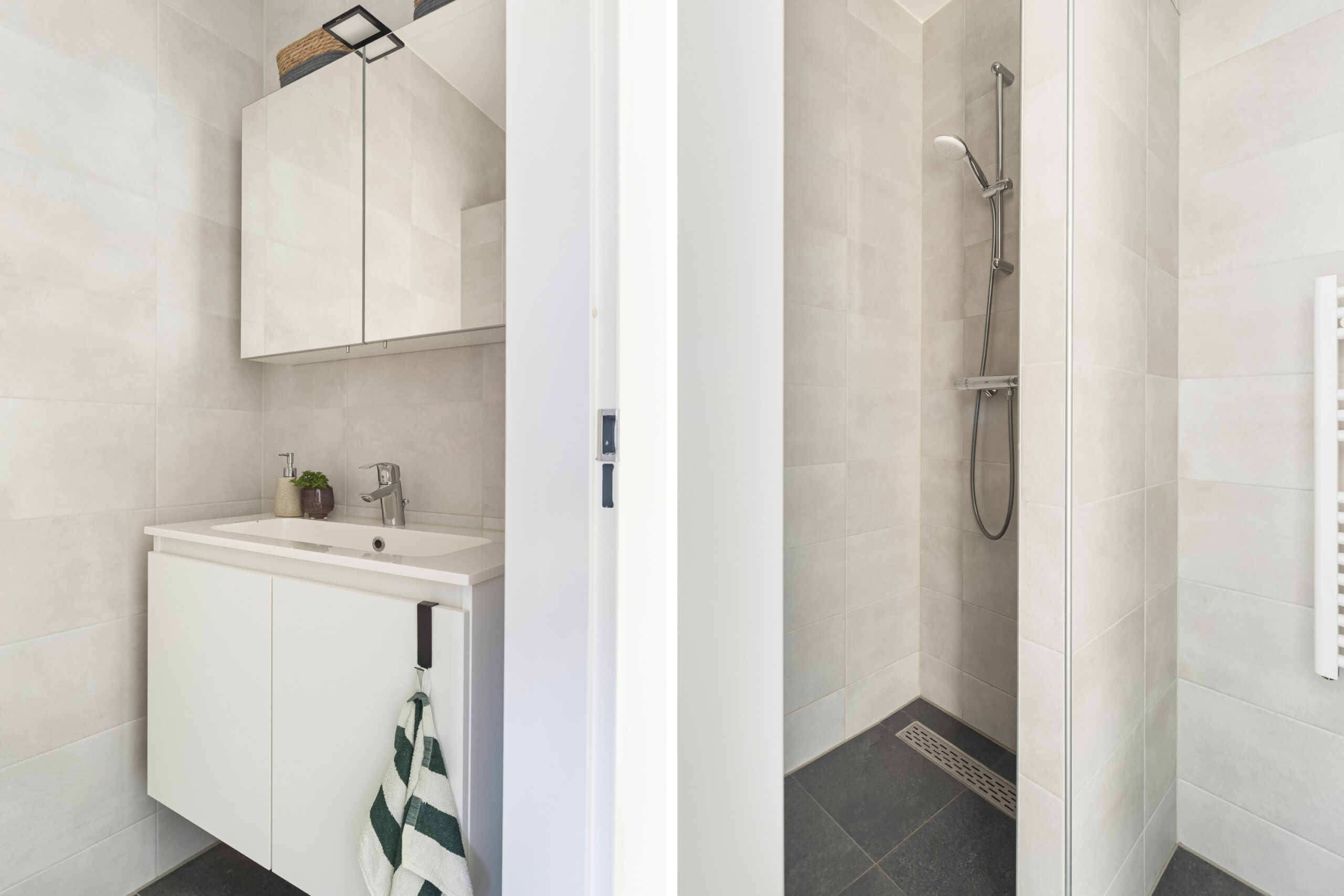 Knusse woonkamer. De badkamer is modern uitgevoerd en voorzien van een douche en wastafel. 1e slaapkamer aan de voorzijde.