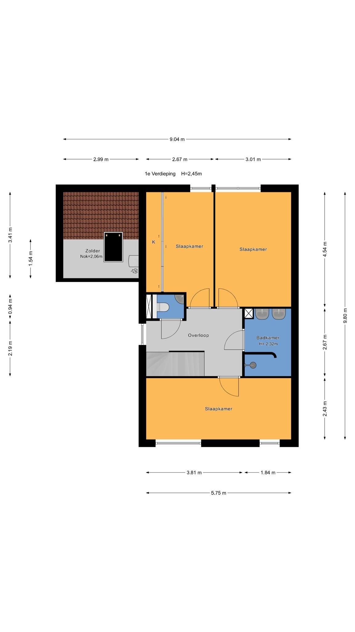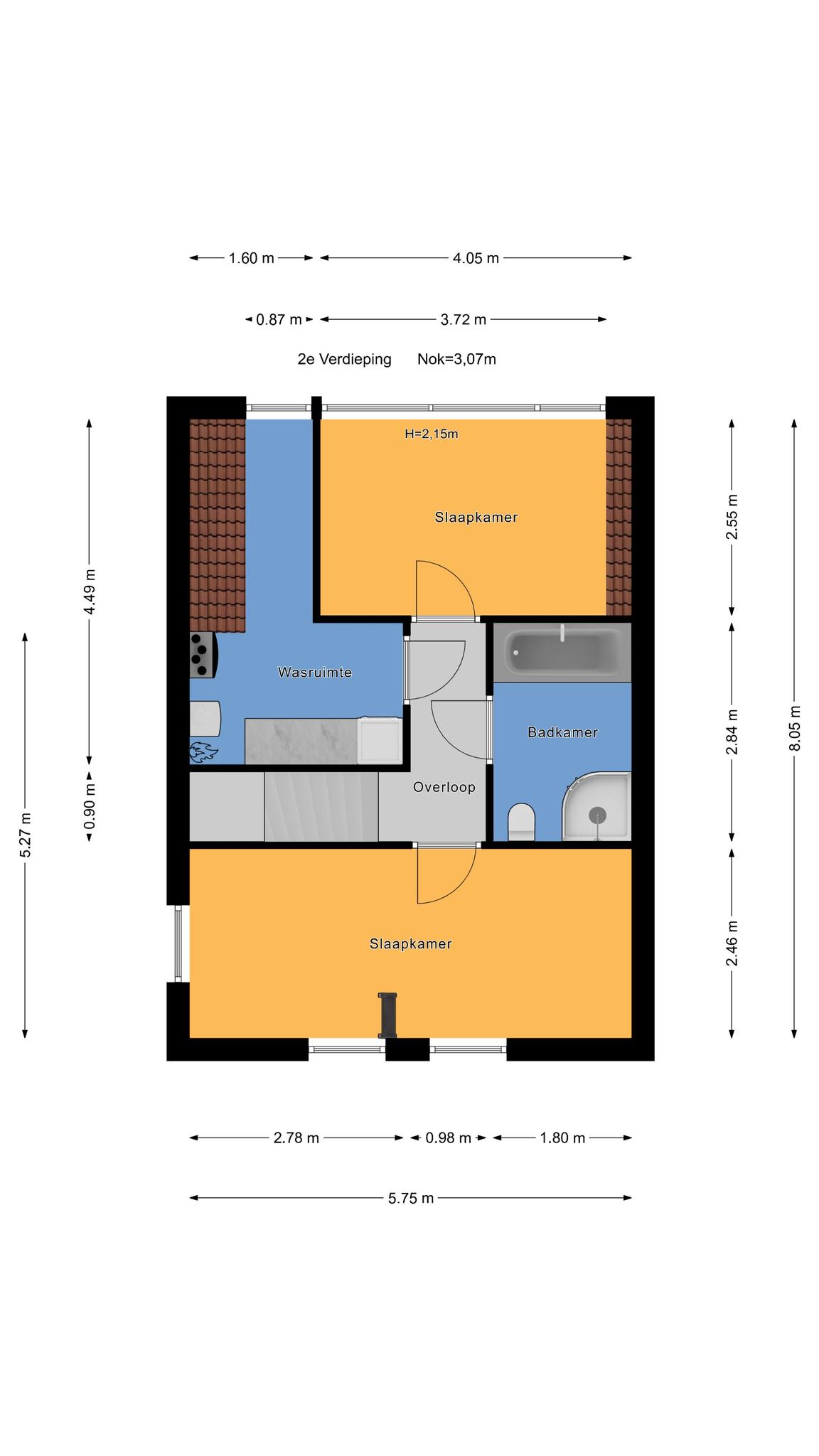 Dakkapel op de 2e etage: Zorgt voor een extra kamer op de 2e etage.