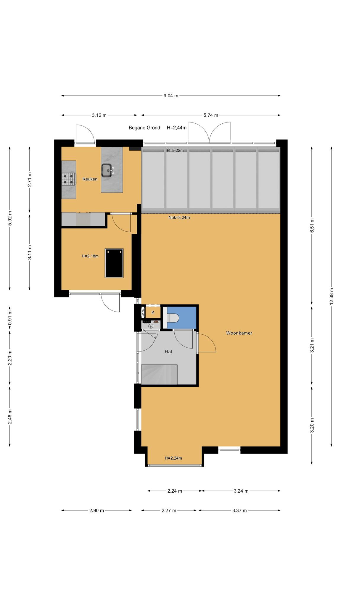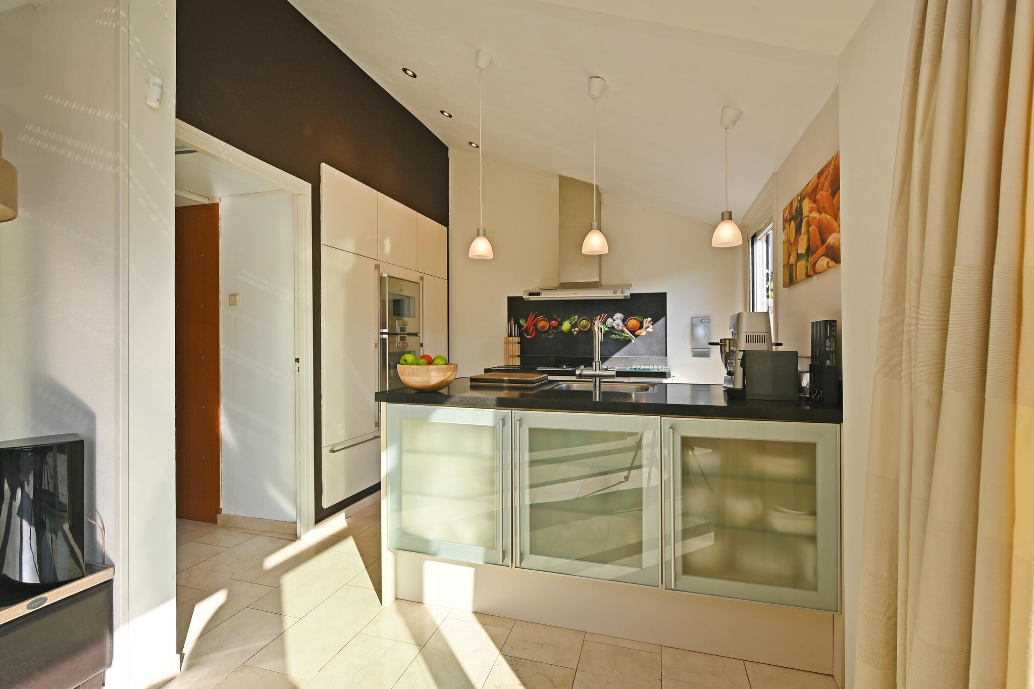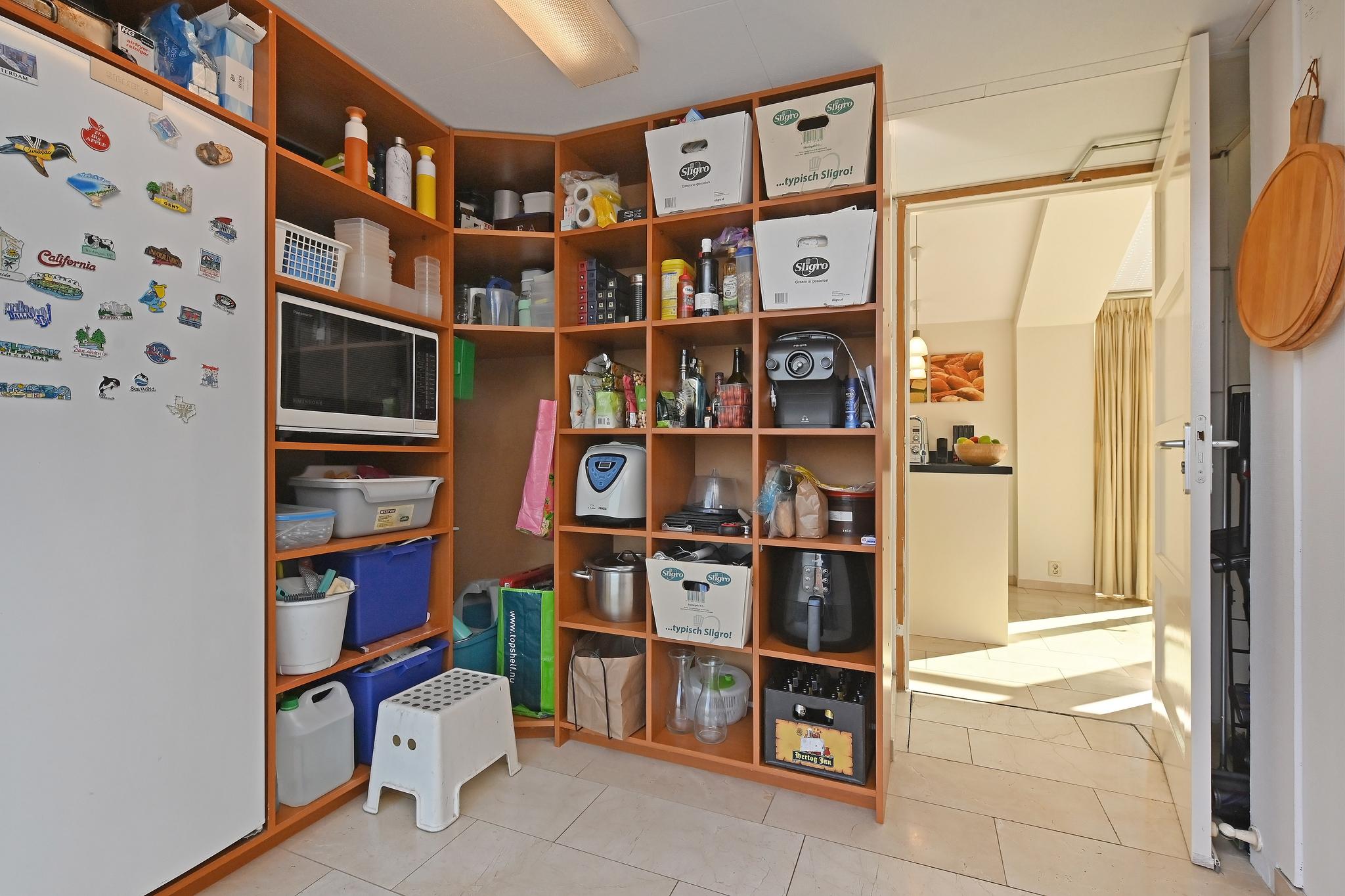 Open keuken en bijkeuken: De open keuken aan de tuinzijde is ideaal! Met een kook-schiereiland en alle inbouwapparatuur die je nodig hebt. Extra praktisch: vanuit de keuken loop je zo door naar de bijkeuken of de tuin.