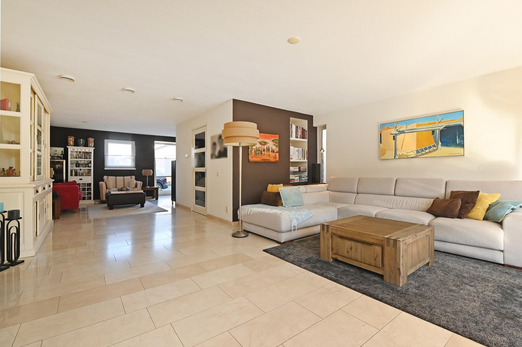 Grote woonkamer: De royale woonkamer is extra groot geworden door het bijtrekken van de garage…