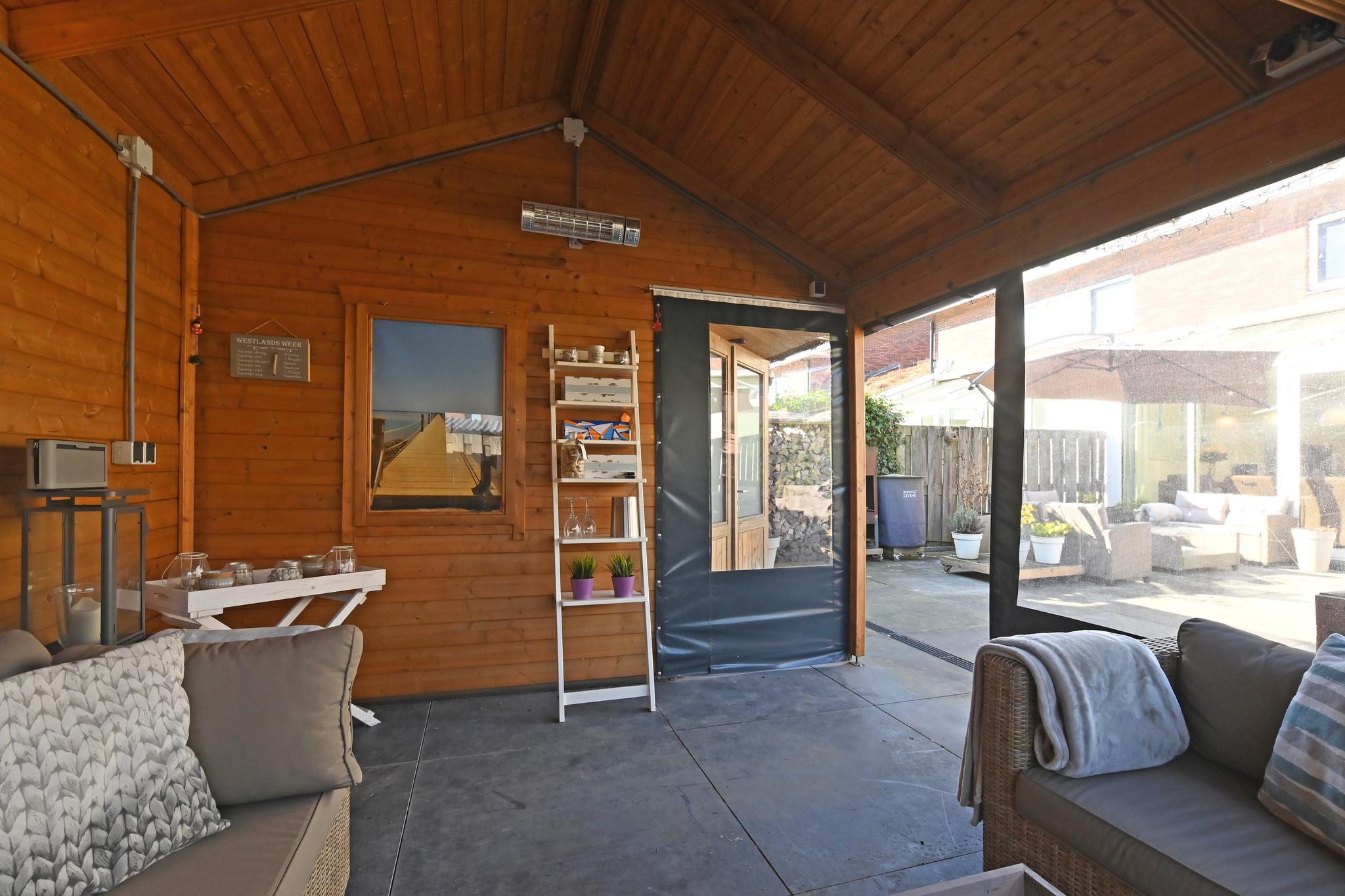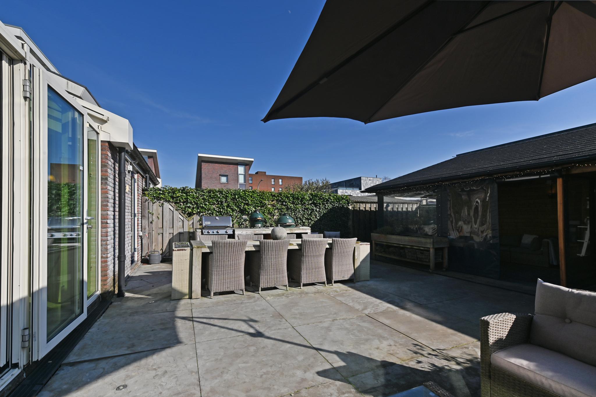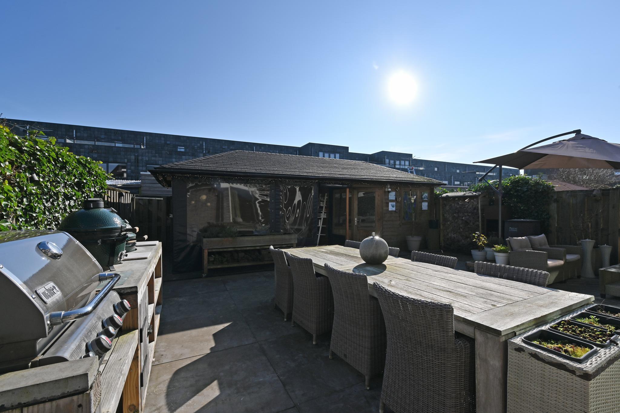 Fijne buitenruimte: De tuin ligt op het zuiden en biedt volop zon, met een fijne overkapping waar je lange zomeravonden kunt doorbrengen. Er is zelfs een buitenkeuken aanwezig. Naast de overkapping bevindt zich de berging.