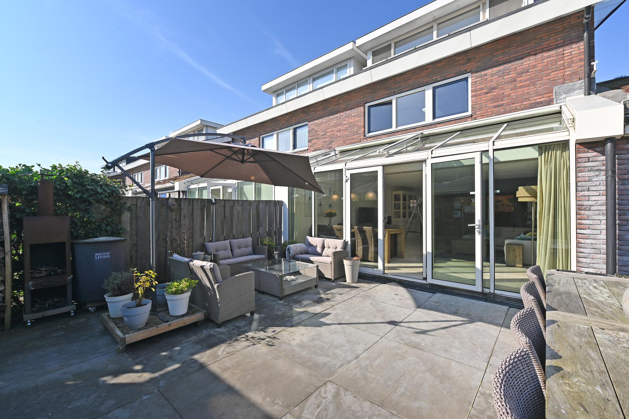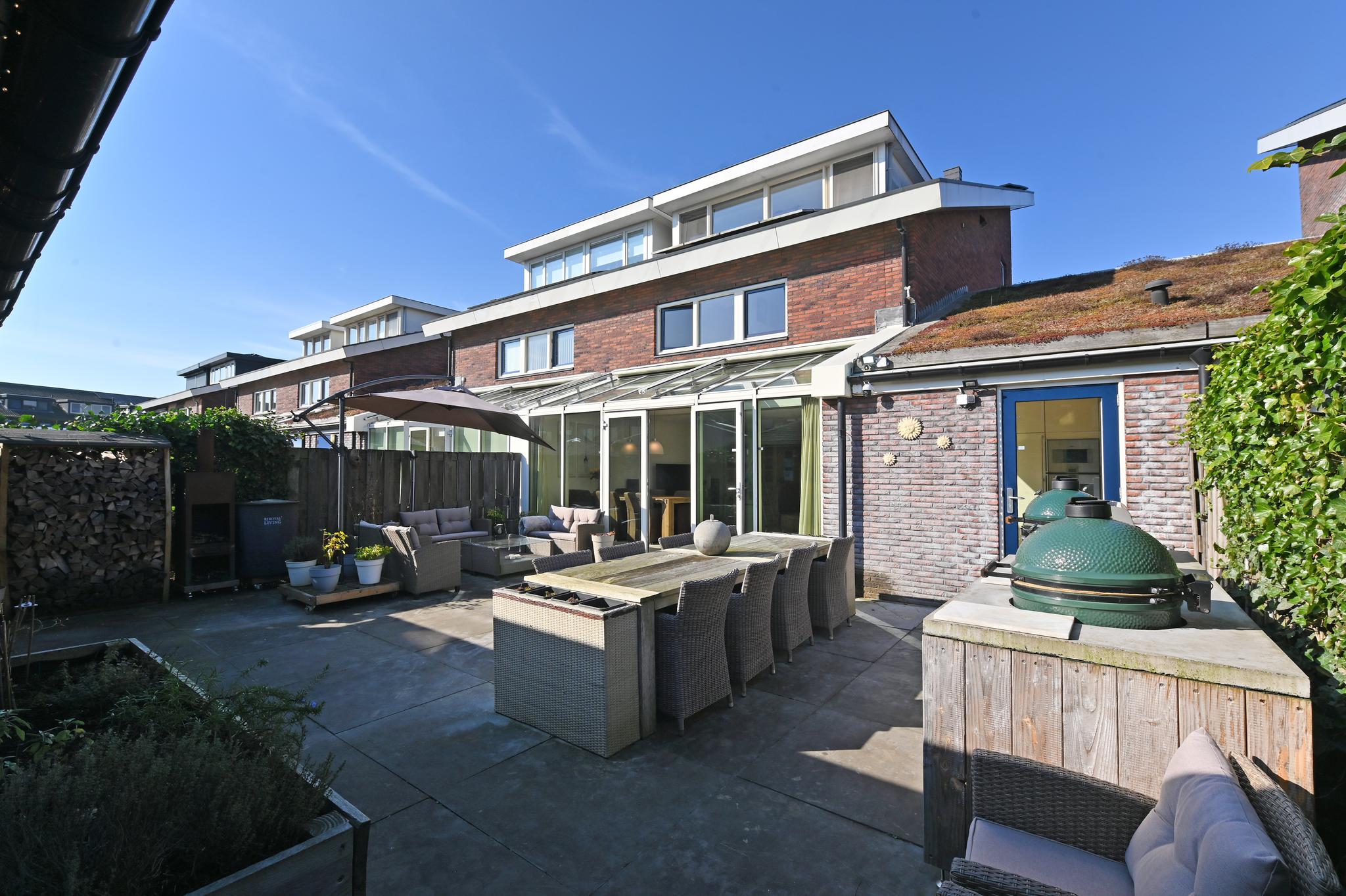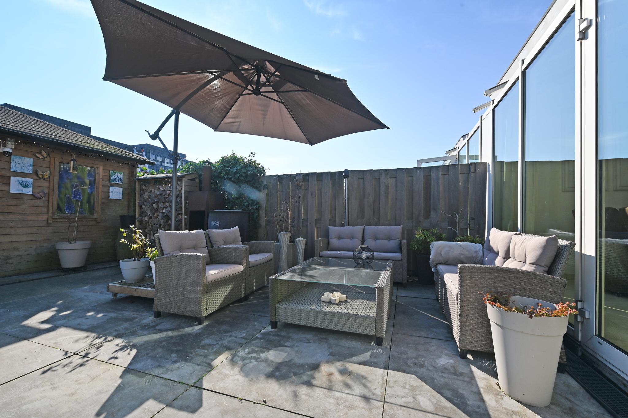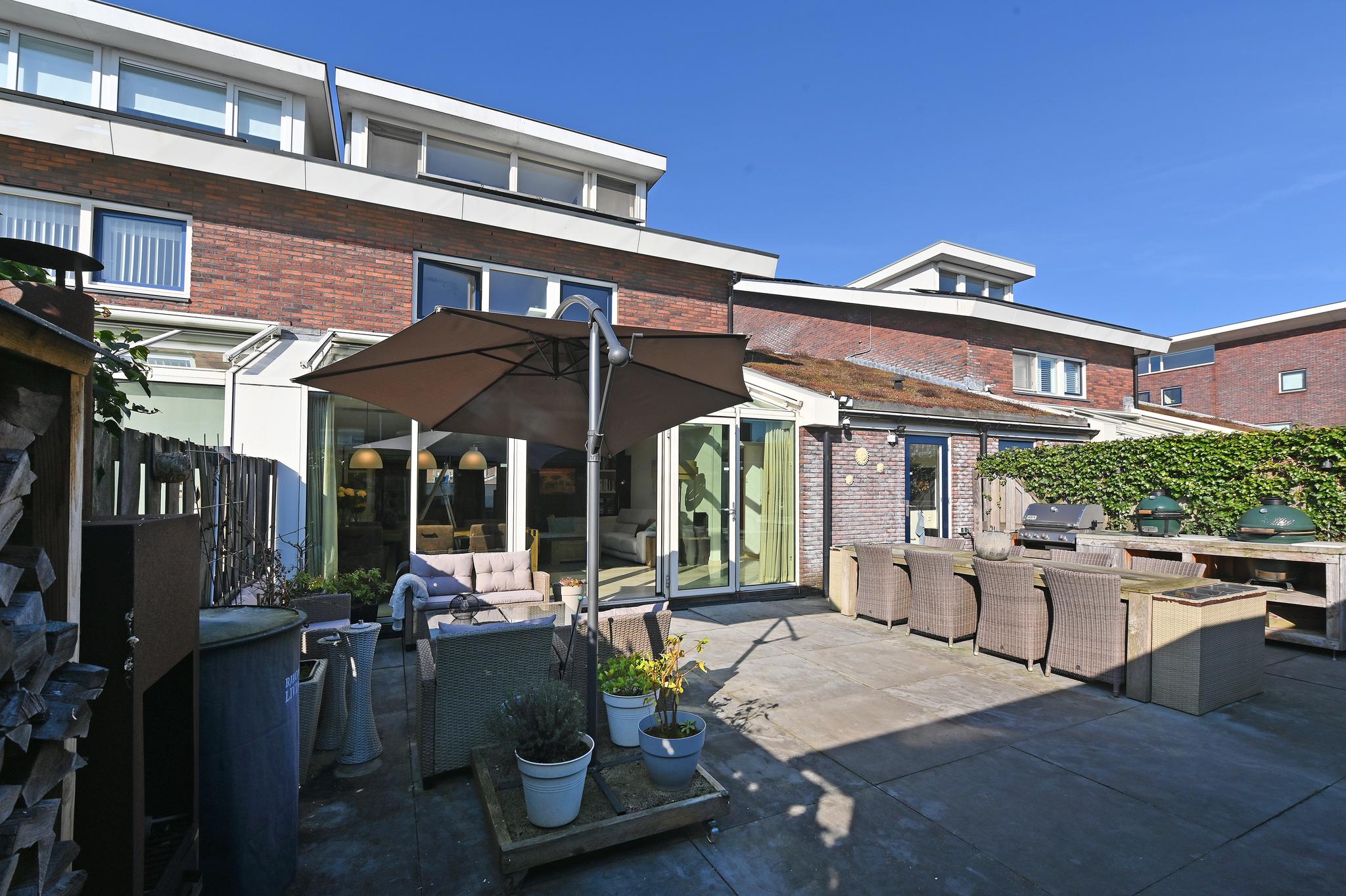 Fijne buitenruimte: De tuin ligt op het zuiden en biedt volop zon, met een fijne overkapping waar je lange zomeravonden kunt doorbrengen. Er is zelfs een buitenkeuken aanwezig. Naast de overkapping bevindt zich de berging.